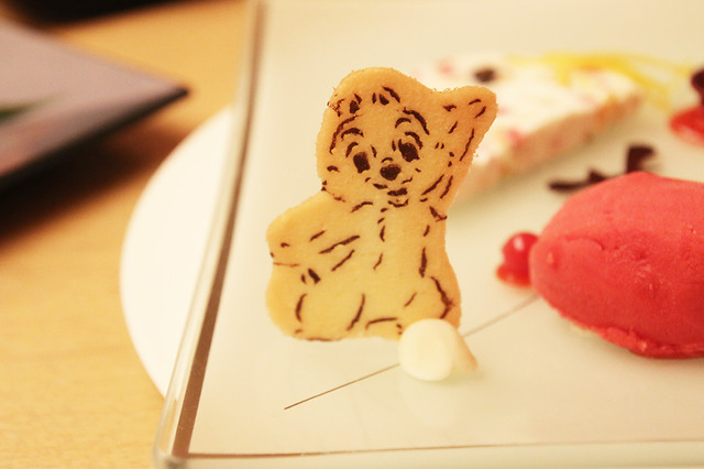 本格日本料理レストランの「花 Hana」では、チップとデールをイメージしました「花絵巻」(3,500円)を試食。先付、前菜盛り合わせ(鴨低温煮 牛タンスモーク 白梅貝)、お造り、真鯛若狭焼き、揚げ出汁豆腐、野菜と白子の炊き合わせ、海老フライの太巻きと温うどん、ヌガーグラッセとラズベリーソルベの和コースで、ディズニーホテルで3,000円台のランチは、予想以上にリーズナブル。味もボリュームも申し分ない日本料理を堪能した。