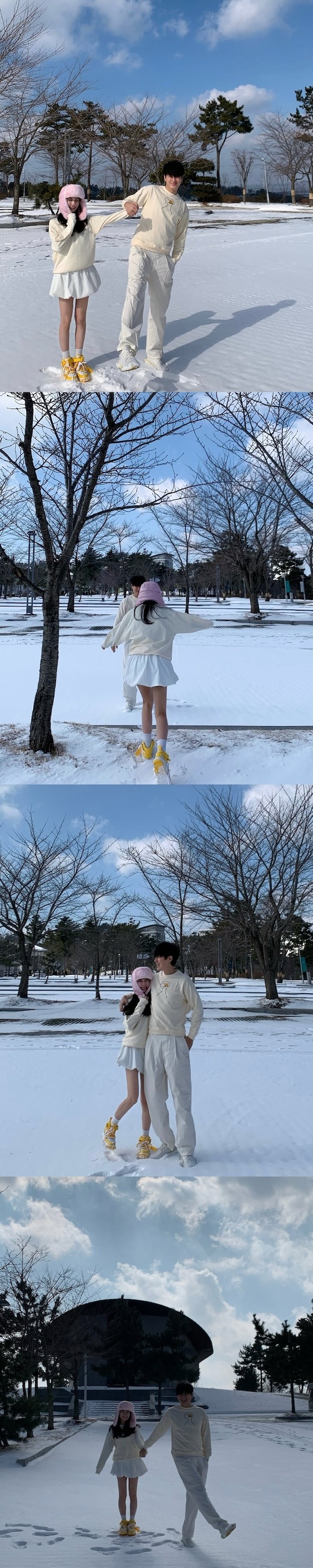 雪が降ったなか、外で夫婦だけの時間を過ごす2人のラブラブな雰囲気が印象的だ。まるで大学生カップルのような初々しさとお似合いぶりが、見る人を微笑ませた。