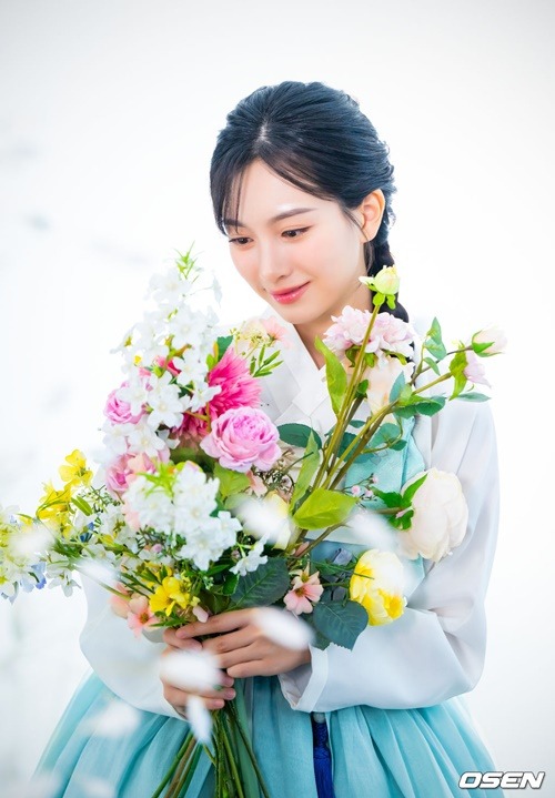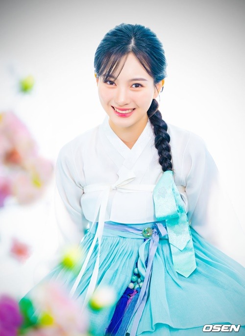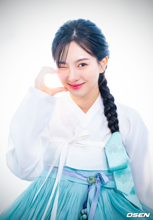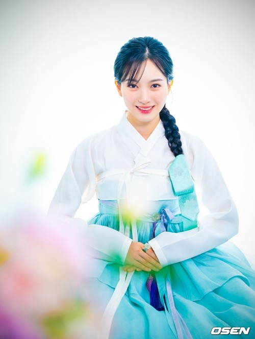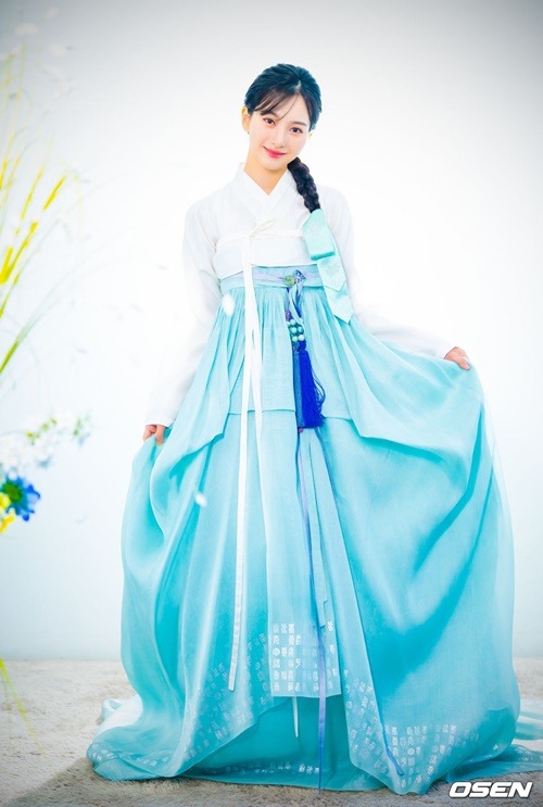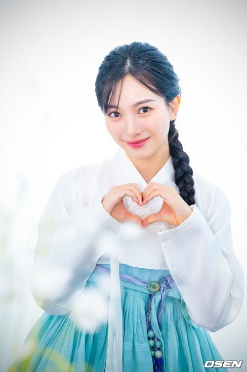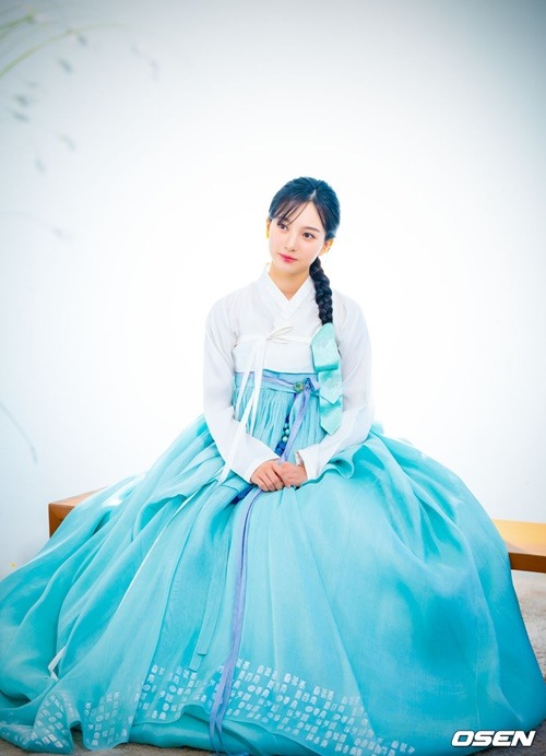 今回の韓服インタビューも、大きな関心を集めた。彼女が身に纏ったのは、純白のチョゴリと淡い空色のチマ。その姿は清らかでありながらも優雅さを醸し出していた。きちんと編み込まれたヘアスタイルが、さらにその魅力を引き立てる。透明感あふれる、清潔で爽やかな雰囲気が完成されていた。