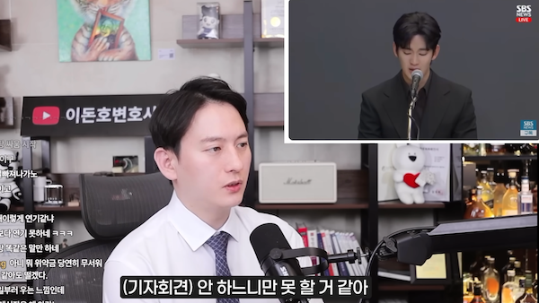 俳優キム・スヒョンの記者会見に対する現役弁護士たちの反応が注目を集めるなか、イ・ドンホ弁護士も自身のYouTubeチャンネルに「私ならこうはしませんでした」と題した動画をアップし、批判した。