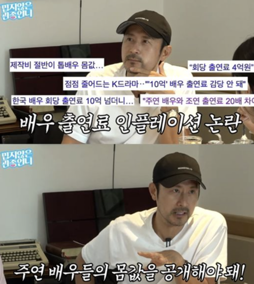 彼は、イ・ジヘが運営するYouTubeチャンネル『憎めないクァンジョン(人の興味を引くために変わった行動や発言をする人)お姉さん』に出演し、「最近、制作不況の原因が俳優のギャラのせいだという世論もあるだろう”と語り始めた。