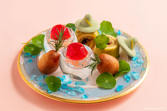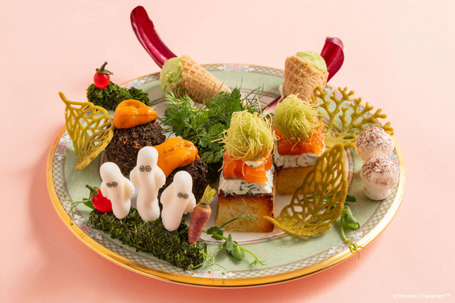 上段は「フラワー」、中段は「ムーミン谷」、下段は「森」とキャラクターや物語をモチーフにしたラインナップは、それぞれにストーリーが込められ一皿ごとに小さな物語が広がるようだ。