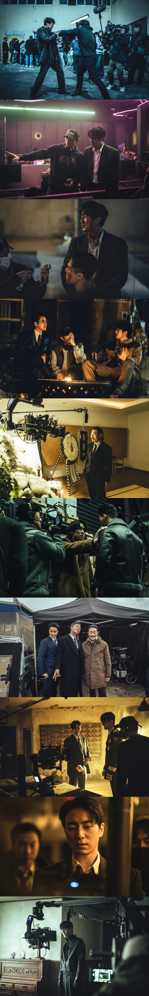 さらに、ジョ・ハンチョル、アン・ギルガン、ホ・ジュノ、チュ・ヨンウ、チャ・スンウォンの笑顔が写ったスチールからは、作中とは異なり、現場の明るく楽しい空気がリアルに伝わってくる。