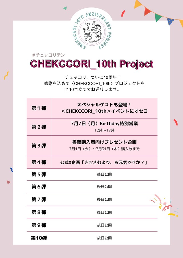 神保町にある韓国書籍専門書店「チェッコリ」は、7月7日(月)でオープン10周年を迎える。この節目をたくさんの方々と一緒にお祝いしたく、記念プロジェクト「CHEKCCORI_10th」(チェッコリテン)を企画した。