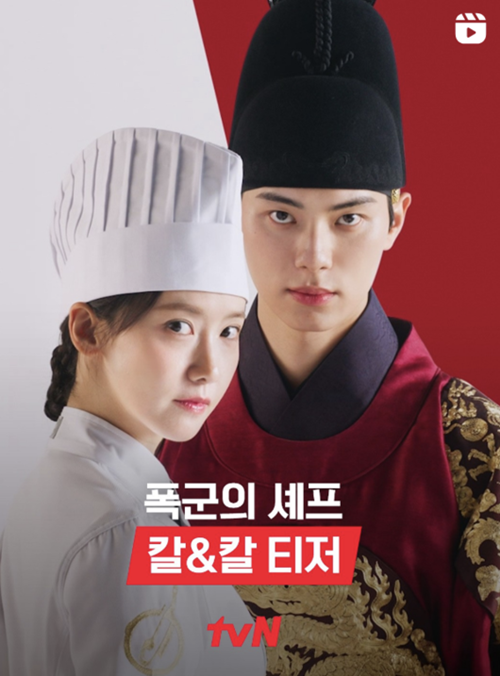 公開されたティザー映像では、純白のシェフ服に身を包んだヨン・ジヨンと、深紅の王の衣装“袞龍袍(コンリョンポ/王が執務のときに着る服)”をまとったイ・ホンのコントラストが強烈な印象を残す。