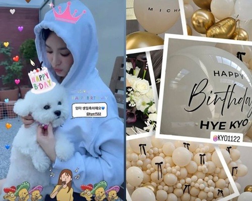 知人たちが準備した華やかなゴールド&ホワイトの誕生日デコレーションも視線を集めた。「HYE KYO」と書かれた大型バルーン、花束とホワイトトーンのバルーン装飾が公開され、長い縁の温かい気持ちが際立った。