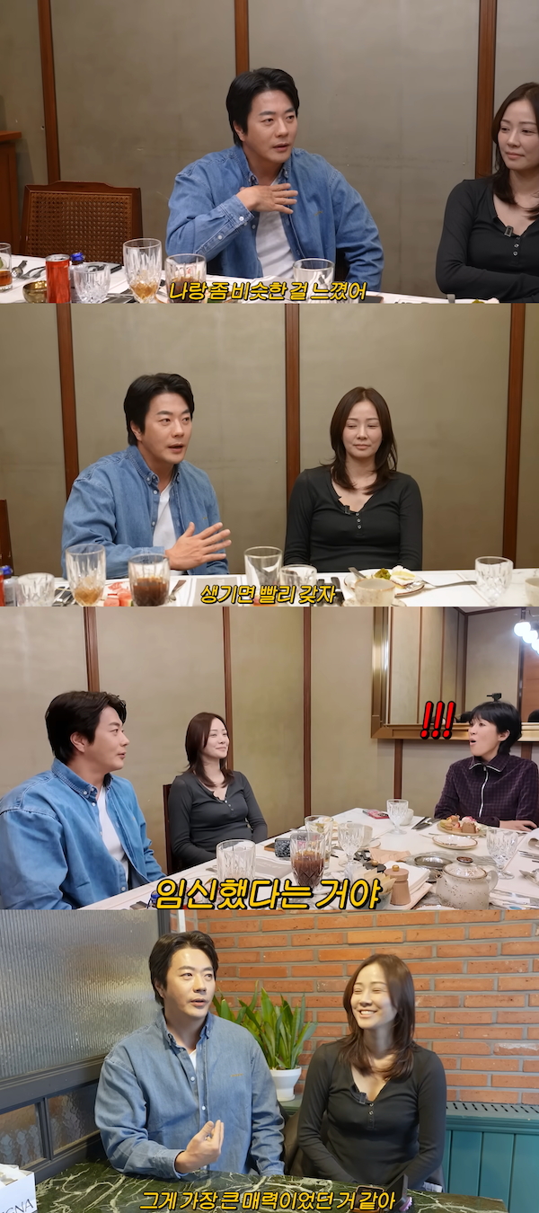 恋愛時代について話題になると、クォン・サンウは「早く子どもが欲しいという気持ちはあった」と前置きしつつ、「事故と言えば事故かもしれないが、子どもができたら早く授かろうと話していた状況だった。ある日、朝からテヨンに電話がかかってきて『大変なことになった』と妊娠を告げられたが、その瞬間、笑ってしまうほど幸せだった」と振り返った。