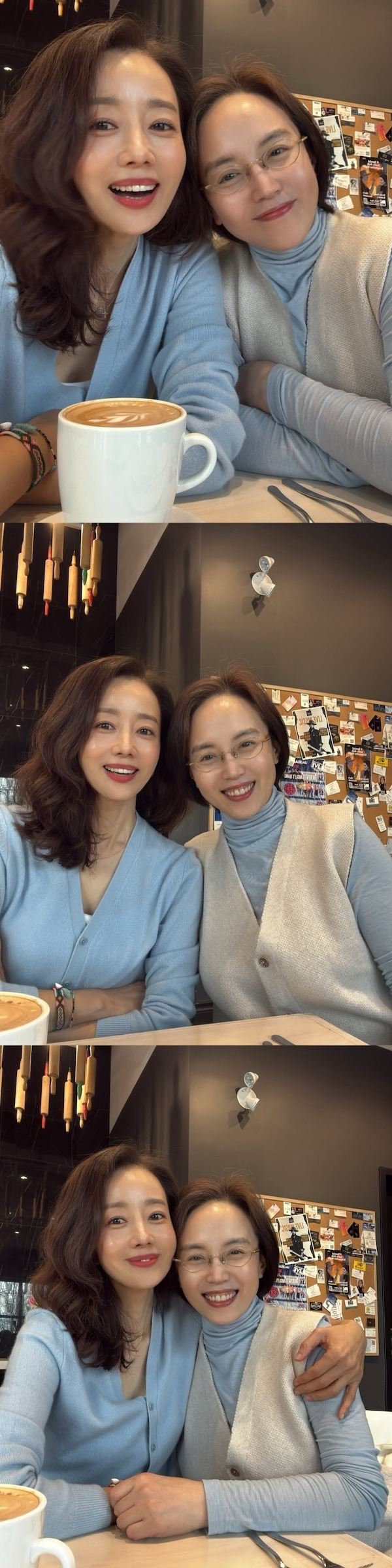 公開された写真の中のユンソナは、全盛期と変わらぬ美貌を保っており、イ・ヘウンと仲睦まじく自撮りを楽しむ様子や、お揃いの水色の服で笑顔を見せる姿が収められている。