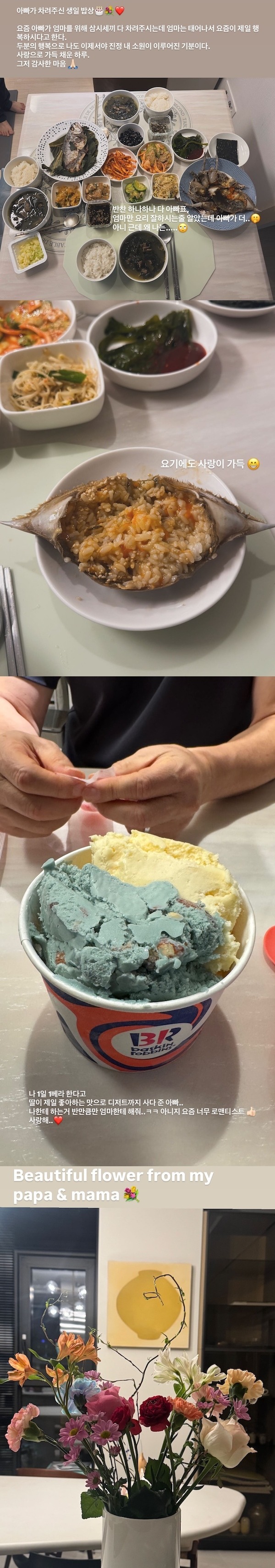 父親の愛情あふれるイベントはこれだけではなかった。ハン・ヒョジュは「私が毎日“1日1サーティワン”をしているからと、娘が一番好きな味でデザートまで買ってきてくれたお父さん…。私にしてくれる半分だけでもお母さんにしてあげて…(笑)いや違うか、最近すごくロマンチストだね、愛してる…」と深い感動を露わにした。