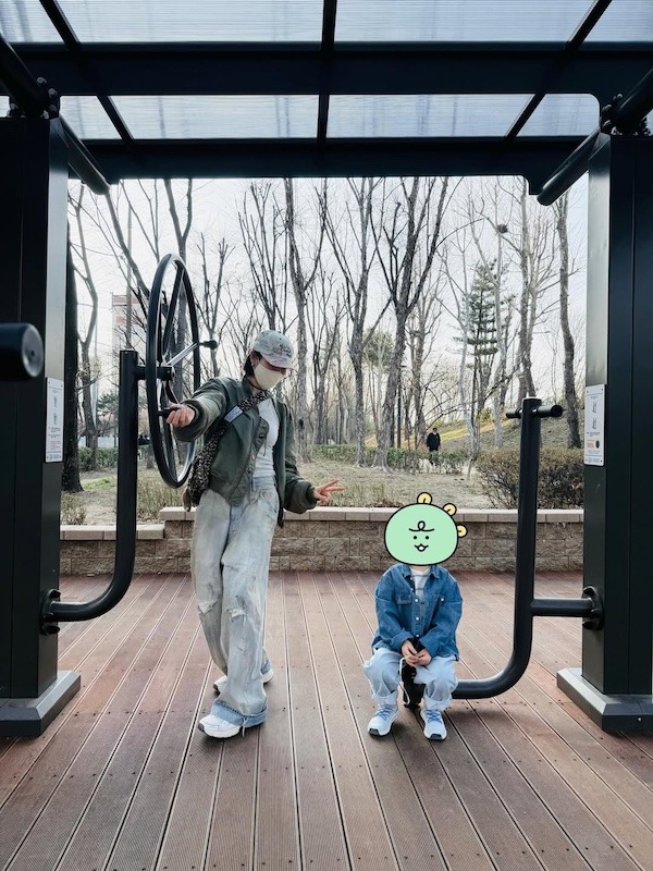 公開された写真の中には、息子と一緒に遊歩道に設けられた運動器具で遊ぶソン・イェジンの姿が写っている。