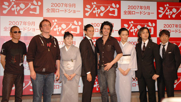 かつて一世を風靡したイタリア製の西部劇“マカロニ・ウエスタン”へのオマージュにして、世界を照準にとらえたニッポン映画。鬼才・三池崇史監督が贈る壮絶なるアクション・ムービー『スキヤキ・ウエスタン ジャンゴ』。6月11日(月)、本作のクランクアップ記者会見が開かれ、三池監督に主演の伊藤英明に伊勢谷友介、安藤政信、木村佳乃、香川照之、桃井かおり、そして本作への出演のために来日したクエンティン・タランティーノというそうそうたるメンバーが一堂に会した。会見前には本作の映像が初めて、一部公開されるとあって多くの報道関係者が詰めかけた。