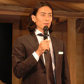壇上には大きな鳥居がそびえ立ち、その後ろには西部劇でおなじみ、“WANTED”の張り紙が貼られた酒場の入り口という異彩を放つセット。北島三郎の歌う、コブシの効いた主題歌が流れる中、一同が現れる。主人公の、名もなきさすらいのガンマンを演じた伊藤さんはジーンズ姿で登場。「みんなとお揃いのスーツで来ようと思ってたんですが、(寸法を)測ってもらったときより足が長くなってしまったみたいで」と会場の笑いを誘った。本作に参加するにあたって「日本人がウエスタンを撮るなんて、ありえないことだと考えていた。だからこそ、ぜひやらせていただきたいと思った」と語る。ちなみに本作は全編英語で撮影された。オファーを受けた当初、英語に全く自信がなかったという伊藤さんだが「何なら日本語で話してもいいから」という監督の甘い言葉(?)に騙されたいう説も。ちなみに三池監督は、香川さんも同じ言葉で説き伏せ、木村さんが「西部劇観たことないんですけど」と相談した際にはあろうことか「俺もあまり好きじゃないから大丈夫」と説得したとか…。