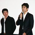 主演の3人がそれぞれ異なる流派の空手有段者という世界初の本格空手映画『黒帯 KURO-OBI』。日本空手の源流である沖縄空手を代表する明武舘剛柔流空手の継承者・八木明人、そして(社)日本空手協会の師範である中達也がスクリーンで真剣勝負を繰り広げる本作が10月13日(土)に初日を迎え、八木さん、中さんのほか、鈴木ゆうじ(改め神尾佑)、長崎俊一監督、脚本の飯田譲治が舞台挨拶を行った。