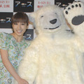 そんな亀田さんの尊敬する白“クマ”の着ぐるみと仲良さそうに登場してきたのは、熊田曜子さん。「何度も巻き戻して観たくなりました。年齢とか関係なく、みんなに何度も楽しんで観てほしい。名前に『熊』という字が入っているので、北極グマの子育てしているシーンは応援したい」と映画の感想を語ってくれた。