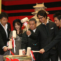 劇場の前では小雨が降る中、全員で鏡開きが行われ、ヒット祈願も行われた。近年、時代劇の大ヒットが少なくなってきた中、いままでにない時代劇として、どこまで観客層を広げることが出来るか、期待がかかる。『火天の城』は全国東映系にて公開中。