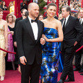 この日、男優の中で最も目立っていたのは『シャーロック・ホームズ』が日本でまもなく公開を迎えるロバート・ダウニー・Jr.。ブルーグリーンの蝶ネクタイに、ブルーのサングラスという独創的なスタイル。奥様のスーザンも裾まで広がるボーダーのマーメイドラインドレスで、2人揃ってレッドカーペットを賑わせた。