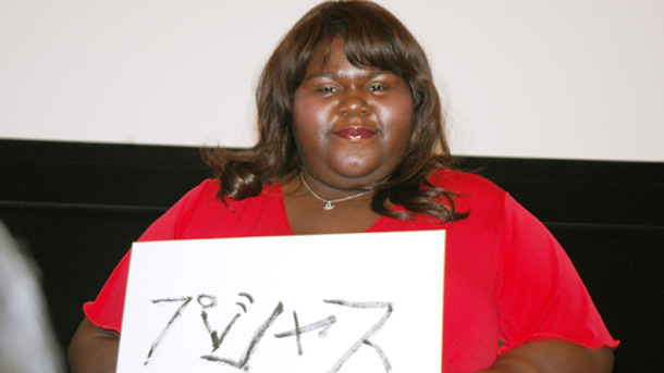 今年のアカデミーで助演女優賞と脚色賞の2部門に輝いた『プレシャス』に主演し、自らも主演女優賞にノミネートされたガボレイ・シディベが来日し、4月5日(月)に開催された本作の特別試写会の舞台挨拶に登壇した。