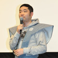 昨年、劇場公開され、興行収入3億円の大ヒットとなった映画『ちょんまげぷりん』のDVD発売を記念して2月3日(木)に本作の試写会が行われ、キングオブコメディ(高橋健一&今野浩喜)が上映前の舞台挨拶に登壇し豆まきを行った。180年前の江戸時代に生きる侍の安兵衛(錦戸亮)が現代にタイムスリップし、なぜかパティシエとしての才覚を開花させていくという本作。安兵衛が侍の精神を失うことなく現代社会を生きる姿が描かれており、今野さんは、安兵衛が居候する働くシングルマザー・ひろ子(ともさかりえ)の部下にあたる“田中くん”役で出演している。裃姿で登場した2人だが、隙間から普段着が見え隠れしており「思いっきり着せられた感じですね」(高橋さん)と苦笑い。今野さんはいきなり「主役を演じた今野です」と自己紹介し、DVD発売についても「役者としての自分を見せられる事故が…いや、時期が来たんだなという気持ち」と噛みながら熱弁。高橋さんから「ある意味、本当に“事故”ですね」と突っ込まれていた。2人に対して「今後、俳優として活動したい気持ちは?」という質問が投げかけられるも、高橋さんは「滑舌が悪いので…」と消極的な姿勢。これに今野さんが「見た目もフツーですしね」としみじみとした口調で付け加えると高橋さんも負けじと「お前は見た目、フツー以下だから!」と反撃し、会場は笑いに包まれた。ちなみに今野さんは今回の出演に気を良くしたのか「田中くんのスピンオフ作ってほしいですね」、「金獅子賞(※ヴェネチア国際映画祭の最高賞)がほしい」と無謀な夢を連発していた。最後に2人は福を呼び込むべく、マスにたっぷりと入った袋入りの豆を客席に向けて投げて喝采をあびていた。『ちょんまげぷりん』DVDは2月9日(水)より発売。特集 お侍男子にひとめぼれ『ちょんまげぷりん』http://www.cinemacafe.net/ad/purin/「ちょんまげぷりん」[初回限定版]【ディスク2枚組み/三方背BOX付】価格:8,190円(税込)「ちょんまげぷりん」[通常版]価格:4,935円(税込)発売元:ジェイ・ストーム販売元:ジェネオン・ユニバーサル・エンターテイメント発売日:2月9日(水)※レンタル同日開始公式サイト:http://c-purin.jp/