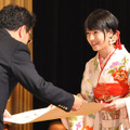 生田さんと同じく新人賞に輝いた桜庭ななみは着物姿で登場。鶴瓶さんからは「普段はボーっとしてるけど、演技させるとすごい! 歌はちょっと…」と紹介された桜庭さんは笑顔で『最後の忠臣蔵』の監督・杉田成道や共演の役所広司、『書道ガールズ!! −わたしたちの甲子園−』で共演した成海璃子らの名前を挙げて感謝を口にした。
