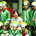 3Dアニメーション映画『豆富小僧』の公開を前に4月20日(水)、ボイスキャストを務めた深田恭子が、物語の舞台でもある東京都墨田区にある、ミドリ保育園を訪問。“きょうこ先生”として園児たちに紙芝居の読み聞かせを行った。京極夏彦の小説を原作に、現代の東京に迷い込んだ気弱な妖怪・豆富小僧が、自分にできることを探していく姿を描いた本作。保育士らしいエプロン姿で登場した“きょうこ先生”は、元気いっぱいの園児たちに向かって映画の物語を紙芝居にしたお話を読み聞かせた。読み終わると園児たちからは大きな拍手が! 「楽しかった? 難しかったかな?」と尋ねる深田さんに、子供たちは「楽しかったー!」と満面の笑みを浮かべていた。そして子供たちからはお礼としてお歌のプレゼントが。墨田区両国の保育園ということで、相撲との縁が深いこの地域ならではの歌として、はっぴを着た年長組の子供たちが、覚えたての“相撲甚句”を『豆富小僧』バージョンにアレンジして披露した。これには深田さんも感激した様子。終了後の報道陣向けの取材では「お歌を歌ってくれたり、一生懸命、紙芝居を聞いてくれて、感動しました。ウルウルしてきて泣いちゃいそうでしたが、我慢しました」と感慨深げに語った。また、同じ事務所の後輩の松山ケンイチが、小雪と入籍したことを受けて報道陣からコメントを求められると「おめでたいですね。幸せになっていただきたいです」と笑顔を見せた。『豆富小僧』は4月29日(金・祝)より全国にて3D、2D同時公開。特集「『豆富小僧』meetsシネカフェくんの冒険」http://www.cinemacafe.net/ad/tofukozo/