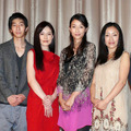 園子温監督の『恋の罪』が11月12日(土)に公開を迎え、園監督を始め、主演の水野美紀、冨樫真、神楽坂恵、津田寛治、小林竜樹が都内劇場で行われた舞台挨拶に登壇した。園監督が、渋谷のラブホテル街で起きた殺人事件にインスパイアされる形で作り上げた本作。円満な家庭を持ちつつも浮気する女刑事、満たされない小説家の妻、夜になると娼婦としてホテル街を徘徊する大学助教授という3人の女性を中心に女の業や欲望が描き出される。念願叶って園作品への出演を果たした水野さんは「監督に新しい一面を引き出していただいた」と充実の表情。自身が演じた女刑事・吉田役について「セックスが愛を確認するためだけの行為でなく、女性にとって渇望や心を満たす代償行為であるということは、女性なら肌で分かると思います」と女性ならではの共感を口にした。大学助教授の美津子を演じた冨樫さんは「美津子の言葉のひとつひとつが印象に残ってますが、『セックス』という言葉を大声で言うところは『こんな大声で言ってたのか…』と驚きました。普段、言う機会がないので…良い体験でした(笑)」と語り、会場の笑いを誘った。小説家の妻・いずみ役の神楽坂さんは、園監督と共にカンヌ国際映画祭に赴いた。夫役の津田さんとのお風呂場でのやりとりに現地の観客が大爆笑していたことを明かし、風呂に入り裸の津田さんと向き合ってのシーンについて「すごく真剣にやってて、私も(津田さんに)触りたかったです」と過激発言。映画を鑑賞したばかりの客席は大いに沸いた。その津田さんはオーディションで小説家の夫役をつかんだ。「何とかオーディションに行けるように仕組んで、監督の前で演技したんですが、緊張して落ちたと思ってたら受かった。涙が出るほど嬉しかった」と大興奮。監督に言われたという「おれが役者に求めているのは『カーペンターズ』の歌声じゃなくてジャニス・ジョプリン」という言葉を紹介し「あかをかなぐり捨てて裸でぶつかりました」と胸を張った。映画初出演となった小林さんは女優陣による強烈なシーンに触れ「ただただ凄まじいとしか言えない。素晴らしい女優さんたちと監督による凄まじいセリフ。それが彼女たちの口から発せられるとき、目がカッと変わるんです。パワーとエネルギーを感じました」と圧倒されたようだ。監督は立ち見もありの大盛況に「感無量です」。「こういう映画でも(客が)入るんだと映画界に教えられるし、映画の可能性として多くのプロデューサーに驚きと意外性を与えられる」と語り、感謝の思いを伝えた。『恋の罪』はテアトル新宿ほか全国にて公開中。