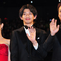 映画『ワイルド7』のジャパン・プレミアが11月28日(月)に都内で開催され、主演の瑛太を始め、椎名桔平、丸山隆平(関ジャニ∞)、阿部力、宇梶剛士、平山祐介、松本実、深田恭子に羽住英一郎監督が舞台挨拶に登壇した。1969年から79年にかけて「週刊少年キング」に連載された望月三起也の人気漫画を実写化した本作。7人の元犯罪者で構成される警察内の超法規的武装集団“ワイルド7”がウイルステロを始めとする数々の凶悪犯罪に立ち向かうと共に、その裏に存在する陰謀を暴いていく。けたたましいバイクのエンジン音と共に幕が開くと、そこにはバイクにまたがったワイルド7の面々が! 劇中のワイルドな様相とは打って変わった、それぞれ個性を反映させたタキシード姿に客席からは大歓声が贈られた。瑛太さんは「やっとみなさんに観ていただけるんですね…嬉しいです」と感無量といった表情。「震災が起きて撮影もどうするのかというとき、プロデューサーから『日本中を勇気づけるためにも撮ろう』と言われ、その言葉を肝に銘じてここまで来ました」と本作に込めた熱い思いを語った。椎名さんはメンバーの中でも冷静沈着なセカイを演じている。現在放送中のドラマ「謎解きはディナーのあとで」(フジテレビ)ではコミカルな魅力を存分に見せているが、本作に関しては「ちゃんとワイルドです!」としっかりアピールした。映画初出演となった丸山さんはタキシードにゴールドのシャツを着こんで登場。「これだけ豪華な俳優さんたちと一緒に、初めて映画に出させてもらって幸せを実感しています。あまり男っぽくなく、ワイルドさに欠けるところがあったので、この作品で素敵なギフトをいただきました。アイドルとして生活してきた中でこんな撮られ方をしたことがなかったです。生まれて初めて『フォトジェニックだね、丸ちゃん』と言われました」と嬉しそうに明かした。深田さんはまさに紅一点! 真っ赤なドレスに身を包み、客席からは「かわいい!」と歓声が飛んだ。“ワイルド”な本作について「男の人のための映画だと思ってましたが、観たら気持ちが変わりました。ときめきながらワクワクできます」と魅力を語ってくれた。司会者からメンバーの中で一番ワイルドなのは誰? と聞かれると「あまりみなさんとご一緒する時間がなかったので、それぞれのワイルドなところを目撃する機会がなかったです。でも作品を観たらどの方もワイルドでした(笑)」と“模範解答”で切り抜け、会場の笑いを誘っていた。羽住監督はキャスト陣を見やり「7人ともワイルドです。夜も酒飲んでワイルドでした」と撮影を述懐。平山さんが「僕は夜はマイルドです」と混ぜっ返すと会場は再び笑いに包まれた。『ワイルド7』は12月21日(水)より全国にて公開。