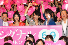 映画『シグナル〜月曜日のルカ〜』の完成披露試写会が3月15日(木)に都内で開催され、本作で演技初挑戦にして主演を務めた三根梓を始め、共演の西島隆弘(AAA)、白石隼也、高良健吾、谷口正晃監督が舞台挨拶に登壇した。『時をかける少女』など若手女優の演出に定評のある谷口監督が関口尚の小説「シグナル」(幻冬舎文庫刊)を実写化。地元の古い映画館で夏の間だけアルバイトすることになった恵介(西島さん)は、そこで3年前のある事件が原因で映画館の外に出られなくなってしまった不思議な少女・ルカ(三根さん)と出会い、惹かれていく。そこへルカの過去を知るレイジ(高良さん)がやって来て…。三根さんにとっては観客を前にしての舞台挨拶は初めての体験。緊張した様子を見せつつも「ここに来るまでに大変なことや楽しかったことがたくさんありましたが、こうしてみなさんに観ていただけるのが嬉しいです」としっかりと思いを伝えた。そんな三根さんの晴れ姿を隣で見つめる西島さんは、自分のことなどそっちのけで感激。「三根さんがここに立っているということが嬉しくてしょうがない! 最初は“大丈夫かな?”と心配でしたが、完成した映画を観たらかわいらしく初々しく映ってて、ニヤニヤしてしまいました」と語った。高良さんも「この瞬間でしかできないことが映ってると思います。三根さんがルカをやった意味が映ってます」と絶賛。同じ事務所に所属し、共に九州出身ということもあり、高良さんは何かと現場で三根さんを気にかけ、話しかけていたようで漫画の話などで盛り上がったという。この日は、“女優・三根梓”の門出を祝って西島さんと高良さんから三根さんに花束が。思わぬサプライズに三根さんは、泣き笑いのような表情を見せつつ改めて監督、スタッフ、共演者、そして会場に足を運んだ観客への感謝の思いを語った。『シグナル〜月曜日のルカ〜』は6月9日(土)より新宿ピカデリーほか全国にて公開。
