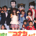 サッカー好きとしても知られる桐谷さん。「家族と一緒にスタジアムで観戦もしていた。中村選手のこともテレビでずっと観ていたんですよ。だから、すごく不思議な感じでドキドキ緊張しています」と隣に立つ中村選手に緊張しきりだった。完成披露試写会には桐谷さん、中村選手を始め、レギュラー声優陣の高山みなみ(江戸川コナン役)、山崎和佳奈(毛利蘭役)、小山力也(毛利小五郎役)、主題歌を担当する「いきものがかり」が出席した。