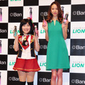 「AKB48」のモノマネ・タレントとして人気急上昇中のキンタロー。が3月7日(木)、モデルの道端アンジェリカと共にライオンの制汗剤「Ban」の新CM発表会に出席した。