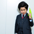 プレゼントでもらったおもちゃの銃を片手にご機嫌の鈴木福くんだったが、インタビュールームに勝地涼が入ってくるとテンションはMAXに! 挨拶代わりにハイタッチをキメて、嬉しそうに近況を語る姿は久々に帰郷した年の離れた兄を迎える弟のように見える。3月20日(祝・水)より公開の映画『コドモ警察』では、見かけは子供だが実は50歳の“デカ長”と23歳の新米刑事という奇妙な関係をコミカルに演じている2人だが、連ドラ、映画を経て絆もより一層強固なものになったよう。デカ長と新米が改めて本作について語り合った。話題は早速、今回の劇場版の見せ場の一つであり、福くんたっての希望で実現したというヘリコプターからのデカ長のショットガンによる反撃シーンに。「(弾丸の装填のために)ショットガンをガチャッ、ガチャッってやりながら撃つのがカッコよかったよね」という勝地さんの言葉に、福くんはまんざらでもない表情で「あのちょっとだけ間を空けて撃つとこがカッコいいんだよね。一発撃って、相手が地面の拳銃を取ろうとしたところでもう一発バーン! やっぱり間だよね」と大人顔負けの解説。普段、同世代や年上の俳優と共演する現場では“愛すべきイジられキャラ”として現場のムードメーカー的な役割を果たすことが多い勝地さん。子どもたちの中で唯一の大人だった今回の現場では、さぞや“頼れる兄貴”として君臨したことだろうと思いきや「不思議なことに子どもたちに囲まれても、なぜかイジられてまして…」と苦笑い。冒頭で福くんとの関係を“年の離れた兄弟のよう”と書いたが、勝地さん曰く「いや、この子たちにしてみたら“ダチ”って感じですよ、多分(笑)」。連ドラの放送は6月に終了し、映画の撮影のための再集合まで半年ほどの間が空いたが、勝地さんはわずかな期間での子どもたちの成長に目を見はったと明かす。「もう当たり前のようにみんな、背も伸びて成長してるんですよ(笑)。もちろん、撮影の間にもお芝居もどんどんうまくなっていく。普段は友達みたいな関係で子どもたちを見てたけど、ふとした瞬間にお父さんのような気持ちになったりしてました(笑)。そういう意味でも映画になってまた福くんたちと会えてよかったなと思います」。ちなみに、福くんにとって勝地さんは「“いろんなこと”を教えてくれる人(笑)」。何やら含みのある物言いだが、福くんは「もういろいろとねぇ(笑)」とすでにデカ長とは別人の悪徳商人のような口調だ。深く聞き出そうとしても「Nooo! 絶対言えないよぉ~。ヤバいことだらけだよぉ!」と何故か余裕しゃくしゃくで、ソファにのけぞるように座っていたが、勝地さんが「そうだね。福くん、いろいろ大好きだから…(笑)」とニヤリと笑うと、福くんは一瞬で素に戻り、慌てて体を起こし「そ、そ、それはあなたでしょーっ!!」と甲高い声で絶叫。「全部あなたでしょ!」と釈明する姿にインタビュールーム内にいたスタッフも含め、一同爆笑だった。気を取り直して福くんに質問! 劇中、デカ長を始め特殊捜査課の面々は、敵の罠で特殊なガスを吸って子どもの姿に戻ってしまうが、逆に福くんがいま、大人の体を手に入れたらどんなことをしてみたい?「うーん。バイクに乗ってみたいかな。あとは買い物。自分のお金で好きなものを買ってみたい!」。とは言うものの、慌てて大人になりたいと思わないくらい、いまのお仕事と学校生活を十分に謳歌しているよう。紅白歌合戦に間で出場するきっかけとなったドラマ「マルモのおきて」に先日、劇場版が公開となった『妖怪人間ベム』など話題作への出演が続く。私生活では4月からもう3年生だ。「背も伸びたし、いっぱいお仕事もしたし、変なことも教えてもらったし(笑)、成長…したかな? やっぱり一番大きかったのは学校に入ったこと。最近は…字が少し上手くなったと思う(笑)」。「好き嫌いはなくなった?」という勝地さんの質問に「イカは嫌い。給食でイカのしょうが焼きが出ると…」と渋い顔。好きな科目は「図工と体育。算数と国語はあんまり…っていうかテストが大嫌い!」とごく普通の小学生としての素顔を覗かせる。そして、以前より公言しているように将来の夢は「仮面ライダー」。過去に「仮面ライダーオーズ」の中の1話にチョイ役で出演した経験はあるが今後、何らかの形で夢が叶う可能性は十分!勝地さんは「福くんがライダーやるなら、オレは悪役で出るよ!」とニヤリ。いつの日かこの約束が果たされること、福くんと勝地さんがアクションシーンで対峙する瞬間を楽しみに待ちたい。