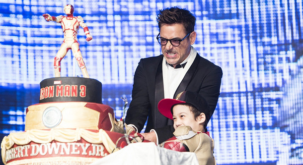 ロバート・ダウニーJr.主演で贈る、大ヒット・アクションシリーズの最新作『アイアンマン3』。4月4日(現地時間)、韓国・ソウルにてファン・イベントが開催され、奇しくもこの日、48回目の誕生日を迎えたロバートはノリノリでファンサービスを行った。壮絶な『アベンジャーズ』での戦いで深い傷を負った、億万長者にしてヒーロー“アイアンマン”である天才発明家トニー・スターク(ロバート・ダウニー Jr.)。そんな中、新たに襲い来る謎の強敵との激闘を通して、彼のアイアンマンとしての“最後の戦い”を描き出す。この日、ソウルの中心街にあるタイムズスクエアに詰めかけたのは、およそ1,000人ものファン。そんな彼らの熱気渦巻くレッドカーペットに颯爽と現れたロバートは、ファンからのサインや写真撮影攻めも終始笑顔でこなし、マスコミ陣のカメラにはVサインを連発! 続くステージ上では投げキッス、さらには「PSY」の大ヒット曲「江南スタイル」ダンスをノリノリで披露するなど、この日のロバートはまさにノリノリ。これぞ“スターの鑑”と言わんばかりのファンサービスを行っていた。マイクを握れば、「昨日の夜の10時に空港についたけど、多くのファンが待っていてくれてとても嬉しかった」と感謝の言葉も。さらに、「普段は辛口な僕でも、今回のシリーズ3作目は劇場に足を運ぶだけの価値がある、素晴らしい作品に仕上がったと自信を持って断言します。みんな今日は本当にありがとう!」と清々しい表情で、次なるワールド・ツアーの目的地へと旅立っていった。『アイアンマン3』は4月26日(金)より2D/3Dにて日本先行公開。