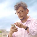 一方の「ジブリの森」篇は、庵野さんがスマホについて聞かれ、「仕事以外のメールを送ってくるのは嫁だけ」と笑顔で話す様子や、auの会員限定スマートフォンサイト「ジブリの森」を見て、自分が登場していることに驚く様子など、素顔の庵野さんを見ることができる。