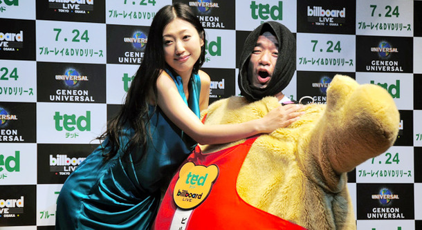 壇蜜さんは中年クマの猛烈アピールに、まんざらでもないようで「中年男性に弄ばれてみたいと言ってたのが現実になりました」とニッコリ。ブルーレイ&DVD発売に際し、テッドの「モコモコ」と壇蜜さんの「ハアハア」を組み合わせた“モコモコハアハア”がキャッチフレーズとなっているが、「夏場には刺激が強すぎるかも」と挑発的に語る。