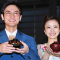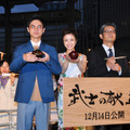 映画『武士の献立』のジャパン・プレミアが10月23日(水)、開催中の第26回東京国際映画祭にて行われ、主演の上戸彩、高良健吾、朝原雄三監督が来場した。江戸時代の加賀藩を舞台に、料理上手を見込まれて“台所侍”と呼ばれる藩の料理人の家に嫁いだ妻と、最初は己の仕事に興味を持てないものの、彼女によって徐々に感化されていく夫の姿を描く。上戸さんは、花柄のワンピースで登場したが、肌寒い秋の夕刻の屋外でのイベントとあって「とても寒いです」と苦笑い。抽選で当選し、会場に駆け付けた観客に対しても「みなさん、風邪を引かないで」と気遣った。上戸さんは、本作で10年ぶりの映画主演となるが「映画ってものすごく大きな仕事で、怖くもあってなかなか足を踏み出せずに気づいたら10年経ってました」と述懐。本作については「食べることが大好きだからか、どんどんのめり込んでました。この時代、男性に逆らったり、男性を引っ張る女性を描くことがないので、そこにも惹かれました」と明かす。高良さんは、これまでいくつかの作品で東京国際映画祭に参加してきたが、2007年の第19回で「日本映画・ある視点」部門において映画『M』で特別賞を受賞したのが、俳優となって初めて個人で受賞した賞だったこともあり「縁を感じています」と笑顔を見せる。今回、時代劇初挑戦となったが「相手を想う気持ちは昔も今も変わらない。時代劇ということで男と女の(境にある)線が濃いことは意識しましたが、今っぽい感じを出している」と語る。上戸さんも「ルールや作法を監督が壊してくれて、コミカルに仕上がっています」と通常の時代劇との違いを強調。『釣りバカ日誌』シリーズなどを手がけてきた朝原監督にとっても時代劇は初挑戦となったが「(時代劇の部分は)優秀な京都のスタッフに任せて現代劇のつもりで、上戸さんや高良くんといったピアスにメガネの人たちがどんな侍になるのかを楽しみにやってました」と語った。最後にジャパン・プレミアを祝って上戸さんらが“繁栄”を願った紅白の米を客席めがけて投げいれ、会場は大きな盛り上がりを見せた。『武士の献立』は12月14日(土)より全国にて公開。