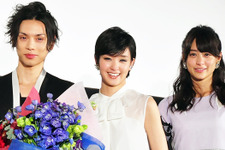 映画『バイロケーション』が1月18日(土)に公開を迎え、都内劇場で舞台挨拶が行われたが、主演の水川あさみは体調不良のため急遽、欠席となった。“バイロケーション”と呼ばれる、自分と同じ容姿でありながら全く別の人格を持つもう一人の自分の存在に悩まされる主人公たちの戦いを描いた本作。この日、公開された「表」ver.に加え、エンディングを変更した“裏”バージョンも公開を予定されている。舞台挨拶には千賀健永(Kis-My-Ft2)、高田翔(ジャニーズJr.)、滝藤賢一、酒井若菜、浅利陽介、豊原功輔、安里麻里監督が登壇。水川さんからは手紙でコメントが寄せられ、観客と共演陣に欠席を詫びると共に、一人二役を演じた本作への特別な思いが綴られ、裏バージョン公開時に改めて舞台挨拶に出席することを約束した。千賀さんは、本作でスクリーンデビューを飾ったが「プレッシャーと緊張があった」と明かしつつも、「後輩(高田さん)が出ているので、そういうところを見せちゃいけないと思い堂々と演じた」とふり返る。バイロケーションとの戦いのシーンでは自分で自分を殴る姿が映し出されるが、「普段、自分自身にイライラすることがあるので、見ててスカッとした」とニッコリ。高いところから落ちるアクションについては「高いところは苦手でホントにビビってました」と明かす。すると監督が「ずっと『ちょい、ちょい、ちょい、ちょい!!』って言ってましたね(笑)」と千賀さんのビビリっぷりを暴露し会場は笑いに包まれた。豊原さんは、千賀さんが以前の舞台挨拶で自分のことを「怖かった」と言っていたことを聞きつけ、「風評被害は止めてほしい」とご立腹の様子? 千賀さんは「怖いと思ってたけどお会いしたら優しかったです」とフォローするも、豊原さんと付き合いの長い滝藤さんが「いまの豊原さんはホントに丸くなったけど、僕が24から25歳の頃に会ったときは怖かった!」と混ぜ返し、豊原さんを苦笑させていた。その滝藤さんは、最初の自己紹介で「去年のブレイク俳優8位の滝藤です。消えないように頑張ります」と挨拶し喝采を浴びる。売れっ子になって忙しいようで、現在も役作りのために減量中だそうで「腹減って、立ってるだけでフラフラする」と語り、「もしも実際にバイロケーションが現れたら?」というキャスト陣への質問でも「どっちでもいい!」と投げやりに回答。豊原さんから「帰ってくれ(笑)!!」とツッコまれ、会場は再び笑いに包まれた。『バイロケーション』「表」ver.は公開中、「裏」ver.は2月1日(土)より全国にて公開。