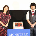 藤原竜也と山田孝之が初共演を果たした『MONSTERZ モンスターズ』の初日舞台挨拶が5月30日(金)に行われ、両者がそろい踏み。劇中で2人が繰り広げる壮絶バトルをほうふつさせる(?)早口言葉対決に興じ、大はしゃぎ。熱戦の末、山田さんが勝利を収めた。藤原さん演じる<すべての人間を操れる男>と、山田さん演じる<唯一、操れない男>の激突を描くサスペンス・アクション。「2人の戦いの結末を楽しんで観てもらえれば」とアピールする藤原さんは、「出会っていそうで、出会っていなかった山田孝之君と初共演し、勉強になる部分があった」とファン待望の初タッグに手応え十分!一方、山田さんは鑑賞前の観客を気遣ってか、「緊迫したシーンがあったかと思えば、裸の男が出てきて、また、緊迫したかと思えば、裸の男…」と本作の見どころを挙げるのに苦心。「おすすめはアクションって言っておいたほうがいいのかなあ。いままでにないアクションができて、いい経験でした」と言葉をふり絞った。東京・新宿ピカデリーで行われた初日舞台挨拶には、藤原さん&山田さんに加えて、共演する石原さとみ、落合モトキ、中田秀夫監督が登壇。この日は主要キャストが朝からテレビ番組に出演し、本作のプロモーションに奔走したそうで、石原さんは「昨日から寝てなくて…。これが終わった後、ご飯を食べたら寝ちゃいそう」とギブアップ寸前? それでも「肩の力を抜いて見てくださいね」と笑顔でアピールしていた。『MONSTERZ モンスターズ』は新宿ピカデリーほか全国にて公開中。