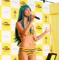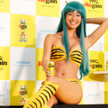 石田純一の娘で、モデル・女優として活躍するすみれが、東京・丸の内オアゾにて6月30日(月)、サントリーから発売される「リゲイン エナジードリンク」新CM記者発表会にイメージキャラクターとして出席。黄色と黒がイメージカラーとなるこの商品にちなみ、すみれさんは、漫画「うる星やつら」のラムちゃんコスプレで登場した。「ラムちゃんになっちゃっただっちゃ~!」と元気よく登場した、すみれさん。美脚に胸元、くびれ…と、大胆な露出っぷりで、ほぼビキニ状態のセクシーな衣装に「初めてのコスプレで、しかもこんなにイベントで露出してるのも初めて。でも生地もレザーでちょっと違うし、ビキニより恥ずかしいです…。(初コスプレに)どうすればいいのか分からなくて、(動きが)ギクシャクしてます」と照れ笑い。さらに、最初にオファーが来たときは「ドレスとかで、ラムちゃんぽい衣装になるのかなと思っていたので、まさかホントにそのまま(ラムちゃんの衣装で)行くとは思ってなかった」と明かし、集まった報道陣の笑いを誘っていた。自身もここまでの“露出”は初めてと語るが、父・石田純一は「まだ、(このコスプレを)見てない」そうで、「心配するかも…大丈夫かな?」と苦笑を浮かべていた。また、今回の新CMではCGを使った撮影、さらに空を自由自在に飛ぶラムちゃんの実写化とあって、ワイヤーに吊るされての撮影だったそう。「撮影は吊るされてるだけじゃなくて、自分で力を入れないと浮いていられないので大変でした」とふり返る。そんな中、報道陣から「もしラムちゃんみたいに飛べたら?」という質問には、「実家のハワイを行ったり来たりしたい」と語っていた。この日のイベントの最後には、道行く人にサンプリングを実施。東京駅の程近くで行われたこともあり、すみれさんから「リゲイン エナジードリンク」を手渡されたサラリーマンたちは満面の笑顔を浮かべ、すみれさんは「どか~んと元気出して!」とアピールしていた。「リゲイン エナジードリンク」は7月1日(火)より全国コンビニにて発売。
