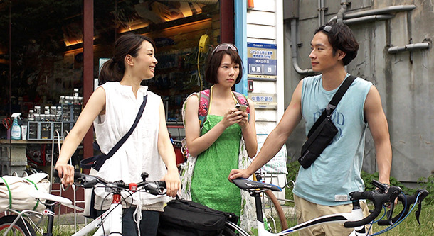 藍子がサイクリングショップで出会い、一緒に旅することになるトントン(テレサ・チー)。この2人の旅とそれぞれが抱える悩みが描かれる。その舞台となる道のりは──1日目は台北から九ふん、基隆。2日目は富貴角燈塔から淡水、新北、永安漁港、通霄。3日目は龍騰断橋、鹿港天后宮、九曲巷、そして日月潭というコースで、4日間、台湾を旅する。そのどれも行ってみたくなる場所ばかり。藍子がレンタルしたママチャリが壊れて、偶然出会ったサイクリストのユウ(コウ・ガ)に助けてもらって、新しい自転車を手に入れて、トントンとユウと3人で颯爽と走るシーンは本当に気持ち良さそう!