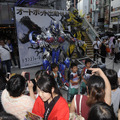 これを受けて、オプティマスやバンブルビーが姿かたちを変えて、いたるところに潜伏しているということで、渋谷の街のビルや大型ビジョンなどが『トランスフォーマー」一色に。街では「指名手配」を報じる号外が配られたほか、渋谷発着の地下鉄銀座線ではバンブルビー号が運行された。