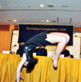 さらに清野さんは、園監督の“指令”でスカート姿にもかかわらず、外国人記者たちを前にバク転を披露! 記者席からは拍手が沸き起こった。