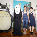 小金井市の江戸東京たてもの園で9月11日(木)、「ジブリの立体建造物展」の動員10万人突破セレモニーが行われ、『思い出のマーニー』の米林宏昌監督と、米林監督が“モデル”とされるカオナシが揃い踏み。米林監督は「こういう機会は初めて」と照れていた。7月10日から江戸東京たてもの園で開催されている同展では、スタジオジブリの出発点である『風の谷のナウシカ』から、『思い出のマーニー』まで作品に登場する建造物の背景画や美術ボード、美術設定といった貴重な資料が展示されているほか、本展覧会のために制作された『千と千尋の神隠し』の“油屋”の立体建造物が来場者を出迎える。2002年に同園で開催された「千と千尋の神隠し展」を上回るペースで、動員10万人を突破し、セレモニーでは幸運にも10万人目の来場者となった竹内美晴さん(19歳)、佐々木春希さん(18歳)に米林監督直筆のイラスト色紙などがプレゼントされた。プライベートでも足を運んだという米林監督は、「いい展示ですよね。ラピュタやナウシカといった何度も観ている作品の背景原画に直接触れると、こういう世界観を作り出す宮崎(駿)さんの頭って、どんな構造しているんだろうと思う」と巨匠の発想力に改めて最敬礼だった。セレモニーには米林監督とカオナシに加えて、トトロも駆けつけ、来場者は大喜び。また、トトロは現在、墨田区の江戸東京博物館で開催される「思い出のマーニー×種田陽平展」に“出張”することも明らかになった。トトロが姿を現すのは、9月12日(金)から最終日の9月15日(月・祝)まで。「ジブリの立体建造物展」は12月14日(日)まで江戸東京たてもの園で開催中。