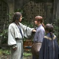 前編『京都大火編』のラストで、傷つき、浜辺に流れ着いた剣心を謎の男が担いで去っていったが、実はその人物こそ、長らく明らかにされてこなかった原作の“最後”の重要人物・比古清十郎で、演じるのは実際に佐藤さんの事務所の先輩に当たり、大友啓史監督の「龍馬伝」でも共演した福山さん。