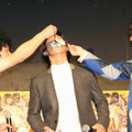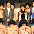 イベントにはギター兼ボーカルの主人公・日々沼拓郎を演じる野村さんを始め、劇中バンド「ザ・ロックンロールブラザーズ」のメンバーを演じる前野朋哉と岡本啓佑(黒猫チェルシー)、共演するアイドル役の二階堂ふみが出席。特製のバースデイケーキが登場すると、前野さん&岡本さんが野村さんの口元に“ア~ン”してあげる場面もあり、和気あいあいとした雰囲気だった。