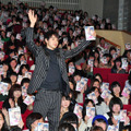 今年の流行語大賞にもノミネートされた、男性が女性を壁際に追い詰める“壁ドン”の火付け役となったと言われる映画『L・DK』の山崎賢人が11月24日(月)、DVD購入者の中から選ばれた700名とのハイタッチ会に参加した。剛力彩芽・主演で人気同名少女漫画を実写化した本作。恋愛に奥手な女子高生と学校一のモテ男とがひょんなきっかけで高校生ながらも秘密の同居生活を送ることになり…。映画公開時から、山崎さんが劇中で、片手を壁に置いて剛力さんを追い詰める、少女漫画の鉄板シチュエーション“壁ドン”が大きな話題となった。山崎さんは700人のファンの大歓声に包まれ、ストライプのスーツ姿で登場。山崎さんにとっても本作は大きな意味を持つ作品になったようで、「(自分を)見て知って、応援していただけるきっかけになったし、“壁ドン”もこんなに流行るなんて、撮っているときは思ってなかった(笑)」と述懐する。この日は、事前に集められたファンからの質問に山崎さんが回答。「女性の好きなヘアスタイルはロング? ショート?」という質問には、「似合っていればショート、ロング、ミディアム…なんでも。人によって似合うものは違うので、(似合う髪型が)一番だと思います」と満点の答えで会場を沸かせる。オフの日の過ごし方は「家で映画を観ることもあるし、友達と遊びに行ったり服を買いに行くことも。晴れたら外に出たい」と明かす。なかなか満足に休みも取れない忙しい日々が続くが、もしも3日間の休みあったら? と問われると「都会を離れて温泉に行ってまったりとし、地方を楽しんで気分転換したい」と語った。この9月で20歳になったが、変わったのは「打ち上げの2次会に行けるようになったこと」。もちろん、気持ちの上での変化もあるようで「何となく責任感とか出てきた」と照れくさそうに語る。「これまでは10代の役が多かったけど、徐々に年齢を上げていけたら」と語った。改めてこの1年をふり返り、ドラマ「弱くても勝てます~青志先生とへっぽこ高校球児の野望~」では野球部員、「水球ヤンキース」で水球、さらに初舞台となった「里見八犬伝」では殺陣も経験するなど「アスリートみたいな1年だった」と語る。「青春もして、体も動かして気持ちいい1年。初舞台もあって、怒濤でした」と充実した表情を見せていた。トークイベント後には山崎さんは会場のロビーでファンを待ち受けてひとりひとりとハイタッチを行なった。『L・DK』ブルーレイ&DVDは発売中。なお、山崎さんの写真集でグアムで撮影された「THE KENTOS」が12月17日(水)に発売となる。