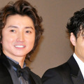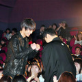 キャスト陣は客席の間を通って登壇。最初に藤原さんと岡田さんがそれぞれ左右の扉から姿を見せると会場は熱狂。窪田さんは、三宅さんと一緒に登場したが、途中で劇中の黒崎と山吹のやりとりそのままに、窪田さんが三宅さんの耳元にささやく仕種を見せ、ファンからは悲鳴のような歓声が上がった。