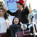 4人は新イベント「アナとエルサのフローズンファンタジー」のスタートを記念して、グランド・マーシャルとして新パレード前に特別出演。1日2回公演中のグリーティングパレード「フローズンファンタジー・グリーティング」の2回目が始まる数十分前に神田さん、松さんらのサプライズ登場のアナウンスが流れると、パレードルートに集まったゲストからはどよめきと大歓声が沸き起こり、一時騒然状態に。オープンカーに乗って登場した4人は笑顔で手を振りながら、ゲストの声援に応えていた。