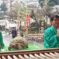 タレントのベッキーが1月15日(木)、東京・江東区の亀戸天神でハリウッド大作『ミュータント・タートルズ』のヒット祈願を、飼っているケヅメリクガメの“ガラパゴス君”とともに行い「とにかく癒されます」とカメとの生活を語っていた。「冬は庭で冬眠しているんですが、今日はカメラに囲まれてテンションが上がっている。ちゃんとカメラ目線もするんですよ」とベッキーさん。「庭の芝をキレイにしてくれるし、まるで天然芝刈り機ですね。残った野菜も食べてくれるので、とてもエコですし」と目を細めた。現在、推定で10~12歳だそうで「世界で2番目に大きなカメの種類なので、もっと大きくなる。甲羅の年輪も健康的だと獣医さんに褒められた」と話していた。この日のヒット祈願にはお笑い芸人のカンニング竹山も駆けつけ、「もし芸人がカメを飼ったら、『どぶろっく』みたいになりそう(笑)」と昨年、お笑いコンビ「どぶろっく」の江口直人が起こしたカミツキガメ逃走騒動をネタに、笑いを誘った。映画はリーダーのレオナルド、暴れん坊のラファエロ、ITメカオタクのドナテロ、お調子者のミケランジェロというカメの忍者4兄弟が、ニューヨークの街を守るために戦うアクションアドベンチャー。日本語吹き替え版でベッキーさんがタートルズの活躍を追う美人レポーター・エイプリルを、竹山さんがタートルズの育ての親で、忍術の達人でもあるネズミのスプリンターを演じている。2人は「タートルズとスプリンターの絆を描いたストーリーが感動的」(ベッキーさん)、「時代はここまで来たかという映像の迫力をぜひ映画館で確認してほしい」(竹山さん)とアピール。また、明けたばかりの2015年の目標として、ベッキーさんが「歩」、竹山さんが「知」を挙げていた。『ミュータント・タートルズ』は2月7日(土)より全国にて公開。