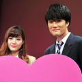 福士蒼汰×有村架純といういま最も旬な2人のW主演による映画『ストロボ・エッジ』の完成披露試写会が2月16日(月)に開催。福士さん、有村さんに加え、共演の山田裕貴、入江甚儀、佐藤ありさ、黒島結菜、廣木隆一監督が舞台挨拶に登壇した。『アオハライド』に続き、女子高生を中心に高い支持を集める咲坂伊緒の人気漫画を映画化。「好きな人に、好きな人がいても好き。」をキャッチコピーに、学年一のイケメンでクールな蓮と彼にフラれても片想いの仁菜子を中心に、高校生たちの爽やかで切なくもある青春を描き出す。この完成披露のチケットの応募総数は実に2万810通で当選倍率は520倍! 劇中の制服姿で壇上に福士さんらが姿を見せると、このラッキーな当選者たちは割れんばかりの拍手と歓声で迎えた。福士さんは元々、原作漫画の大ファン。「高校2年生で読んでて、自分が蓮をやったら? と考えながら声を出して読んでました。夢が叶った感じです」と喜びを語る。有村さんは、仁菜子役のために長かった髪をバッサリと切ったが「長いと仁菜子じゃないので『切りたい』と言いました。切ってみると気持ちがサッパリしたし、容姿を変えるというこれまでと違った役作りのアプローチが新鮮で嬉しかったです」と充実した表情を見せた。久々の制服については福士さんは「同窓会みたい。いいよね、制服」と笑うが、佐藤さんは「26歳なのに制服ですいません!」といきなり謝罪し笑いを誘う。現役高校生は唯一、現在高校3年生の黒島さんだけで、「22歳だけど」(有村さん)、「24だよ!」(山田さん)と口々に自虐コメントが飛び出し会場は笑いに包まれた。有村さんは映画について「“好き”がたくさん詰まった映画。片想いの切なさや胸キュンがたくさんあるのでそれも楽しんでもらいつつ、福士蒼汰くんにやられちゃってください!」とニッコリ。去り際には福士さん、入江さん、山田さんが、客席に向けて投げキッスのサービスで、集まった女子をメロメロにしていた。『ストロボ・エッジ』は3月14日(土)より全国にて公開。