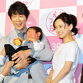佐々木蔵之介と永作博美が10年ぶりに夫婦役を演じた映画『夫婦フーフー日記』の完成披露試写会が3月24日(火)に開催され、佐々木さん、永作さんに加え、共演の佐藤仁美、高橋周平、前田弘二監督も出席。撮影時は生後8か月だった息子役の赤ちゃんと久々の対面を果たした。実話をベースに製作された本作。17年間、友達として過ごしたのちに結婚したダンナとヨメ。入籍後すぐにヨメが妊娠するも、時を置かずにがんに侵されていることが発覚し、やがて悲しい別れが訪れる…。そんな様々な事態に直面するも前を向いて仕事、子育てに奔走するダンナの姿を描き出す。佐々木さんは本作の脚本を最初に読んで「ただ悲しい、苦しい、絶望だけでなく、希望にあふれていて笑い泣きしました」と明かす。脚本を呼んで出演を即決したという永作さんも「本当に面白かった。魅力的な人がたくさんいて、こんなに泣いたり笑ったり忙しい脚本はない! 感情が揺り動かされて『やりたい』と思いました。闘病シーンがしっかりとある中で、こんなに笑っちゃうなんて…爆笑しましたから」と語る。2人の“夫婦漫才”のような掛け合いも本作の大きな魅力だが、佐々木さんは「(永作さんとの共演は)10年前に夫婦をやって以来ですが、何の打ち合わせもなくやれました」とニッコリ。永作さんは「ボケとツッコミが多くて、生粋の関西人の佐々木さんがいてくださってよかったです! 私も(佐々木さんのボケとツッコミを)盗もうとしたんですが、全く盗めなかったです(笑)」と述懐。すかさず佐々木さんから「永作さんのキャリアにそんなのいらないでしょ!」とツッコミが入り、会場は笑いに包まれた。改めて久々の共演について、佐々木さんは「アイドルグループの)『ribbon』の頃から全く変わらないかわいさでした。僕が関西の小劇場にいた頃、『ribbon』が古田新太さんの『劇団☆新感線』に客演すると聞いて『え? ribbonが?』と思った頃から変わらないです」と永作さんの変わらぬかわいらしさを絶賛! 永作さんは「あいかわらず男らしい方だと実感しました」と役を離れても仲睦まじい様子をうかがわせた。ヨメに先立たれたダンナは父親として仕事、そして“ぺーちゃん”の育児に奔走するが、佐々木さんは「撮影は3週間でタイトなんですけど、ぺーちゃんにはぺーちゃんの時間が流れてる(笑)。笑ってほしい時でも、ぺーさまは、お泣きになられたり、寝ておられたり…(笑)。それでも1回、笑ってもらえると現場が明るくなるんです。(劇中のダンナと)現場がリンクしてました」とふり返る。永作さんはそんな佐々木さんの奮闘について「大変だったと思いますが慣れてらして、上手に抱っこして落ち着いてました」とパパぶりを称える。佐藤さんは「(現場に)いないと思ったらぺーちゃんのところに行ってて、いると思ったら筋トレしてた(笑)」と明かし、会場は再び笑いに包まれた。そして、イベントの最後にぺーちゃんを演じた平井美遥ちゃんが佐々木さんに抱っこされて登場! 撮影当時は生後8か月だったが、そこから約1年で大きく成長し、佐々木さん、永作さんらを驚かせていた。『夫婦フーフー日記』は5月30日(土)より全国にて公開。