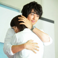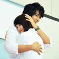 そして、司会者のリクエストにより、2人はポスターにもなっている抱擁シーンを報道陣の前で再現! 実はこのポスターの構図、斎藤さんの背が高すぎるため、斎藤さんが少しかがむような姿勢で撮影されたそうだが、斎藤さんは「浣腸を待つような姿勢だった(笑)」と医師役とはいえ、セクシー俳優らしからぬたとえで表現し、会場は笑いに包まれていた。